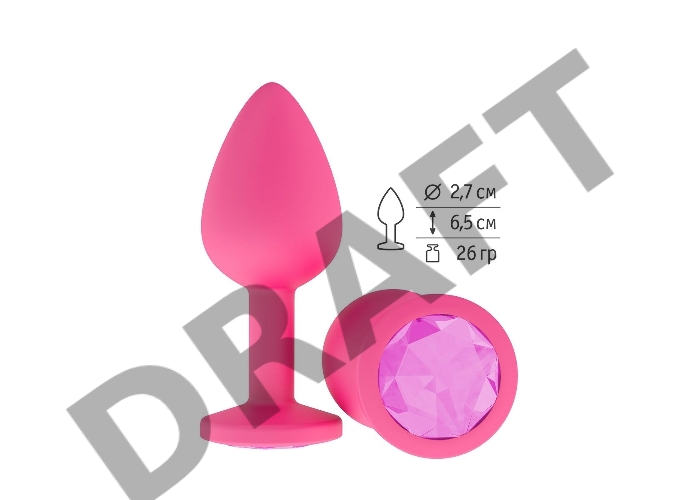 Анальная втулка силиконовая розовая с синим кристаллом маленькая