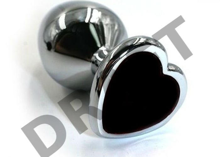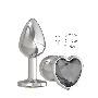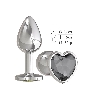 Анальная втулка Silver с чёрным кристаллом сердце маленькая