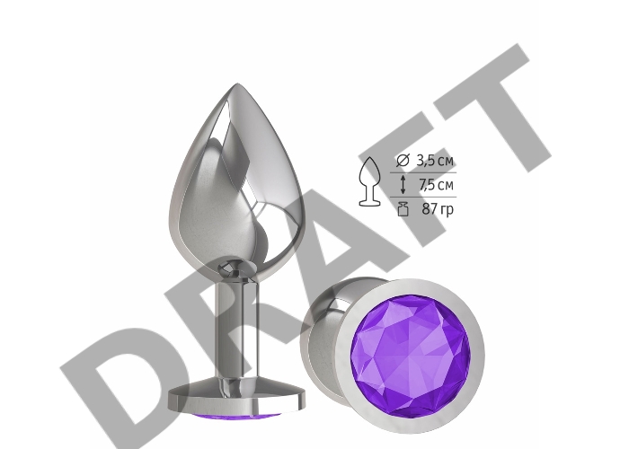 Анальная втулка Silver с фиолетовым кристаллом средняя