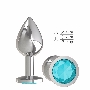 Анальная втулка Silver с голубым кристаллом средняя