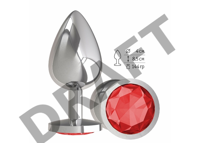 Анальная втулка Silver с красным кристаллом большая