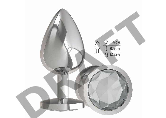 Анальная втулка Silver с прозрачным кристаллом большая