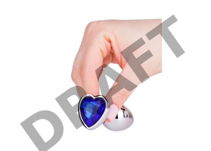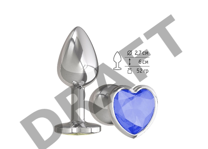 Анальная втулка Silver с синим кристаллом сердце маленькая