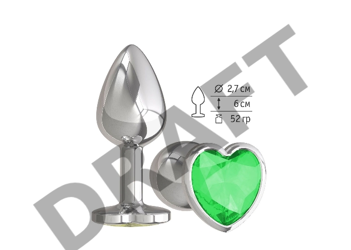 Анальная втулка Silver с зеленым кристаллом сердце маленькая