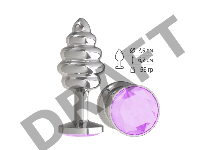Анальная втулка Silver Spiral малая с сиреневым кристаллом