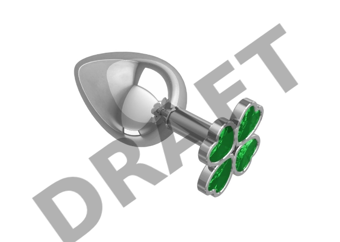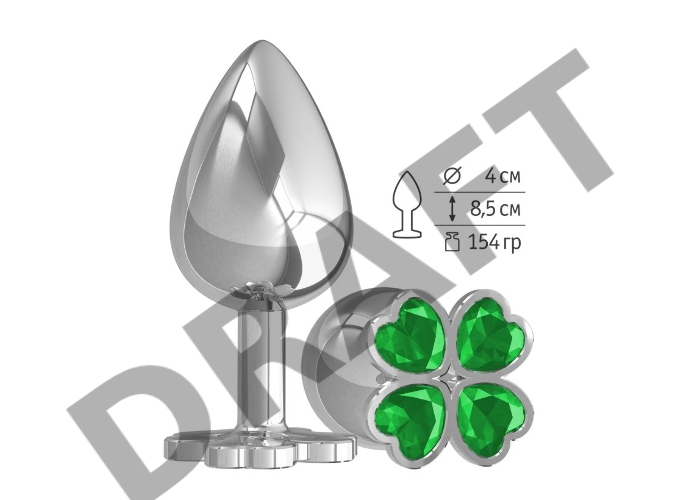 Большая анальная втулка Silver Клевер с зеленым кристаллом