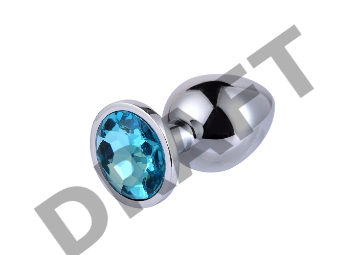 Большая серебристая анальная пробка с голубым кристаллом - 9,5 см.