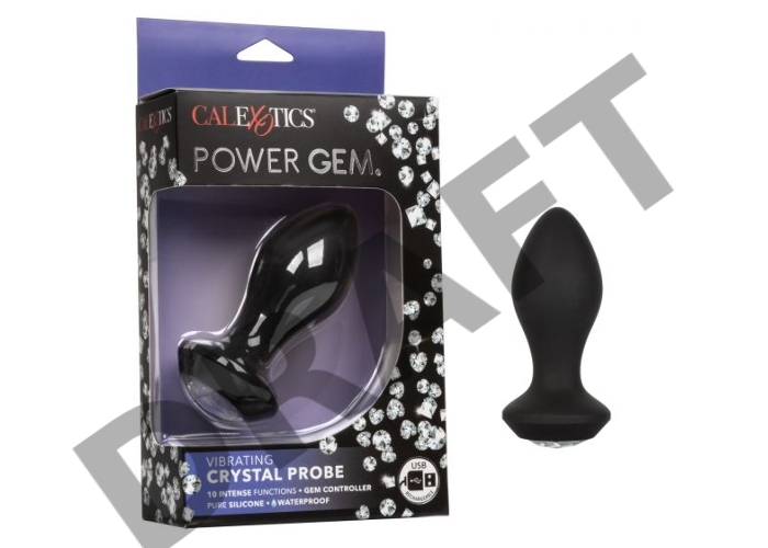 Черная анальная пробка с вибрацией и кристаллом Power Gem Vibrating Crystal Probe - 10,75 см.