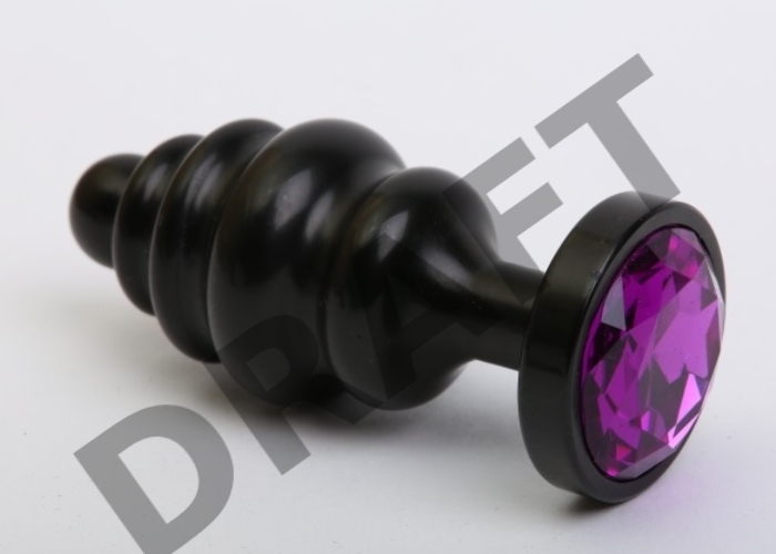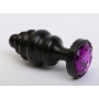 Черная фигурная анальная пробка с фиолетовым кристаллом - 8,2 см.
