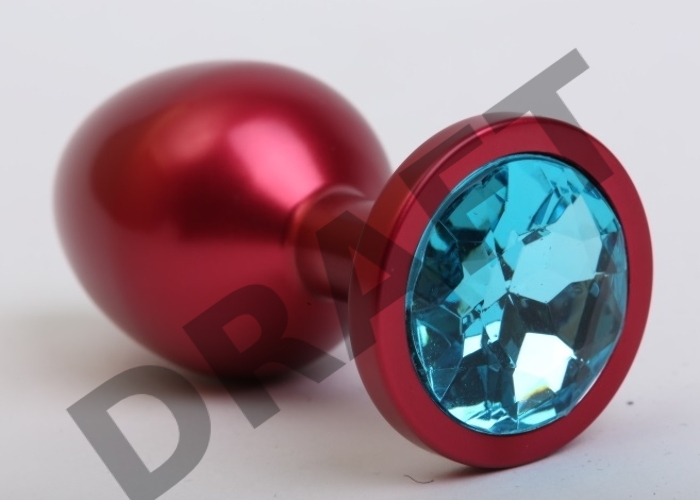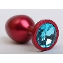 Красная анальная пробка с голубым стразом - 8,2 см.