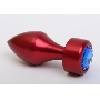Красная анальная пробка с широким основанием и синим кристаллом - 7,8 см.