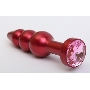 Красная анальная ёлочка с розовым кристаллом - 11,2 см.