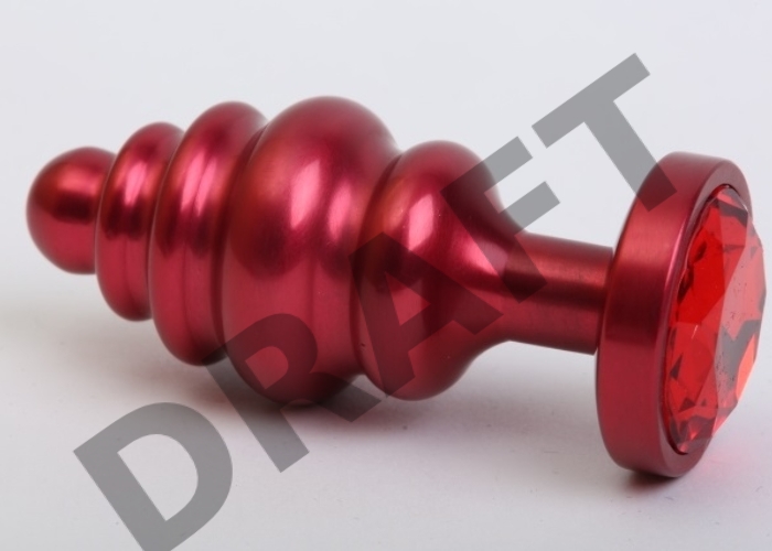 Красная ребристая анальная пробка с красным стразом - 7,3 см.
