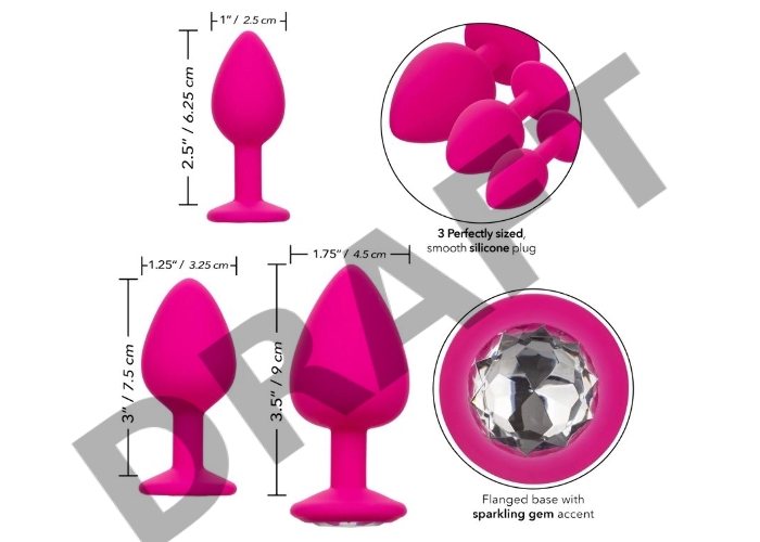 Набор из трёх розовых анальных пробок с кристаллом Cheeky Gems