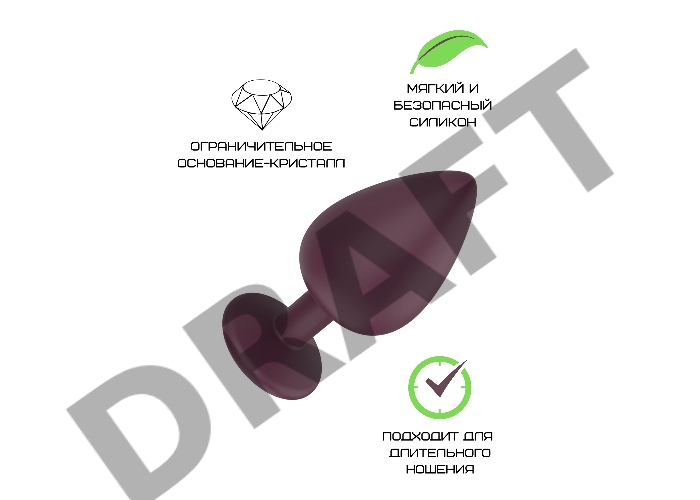 Пробка анальная Темно-красная силиконовая с прозрачным кристаллом S 3309-01