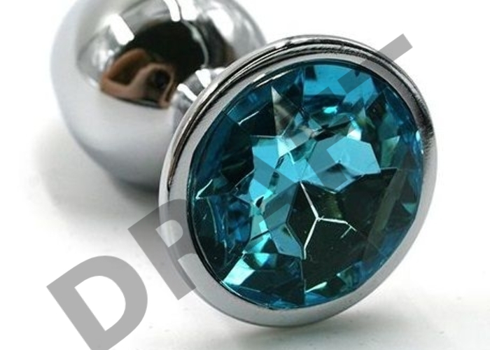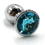 Серебристая алюминиевая анальная пробка с голубым кристаллом - 6 см.