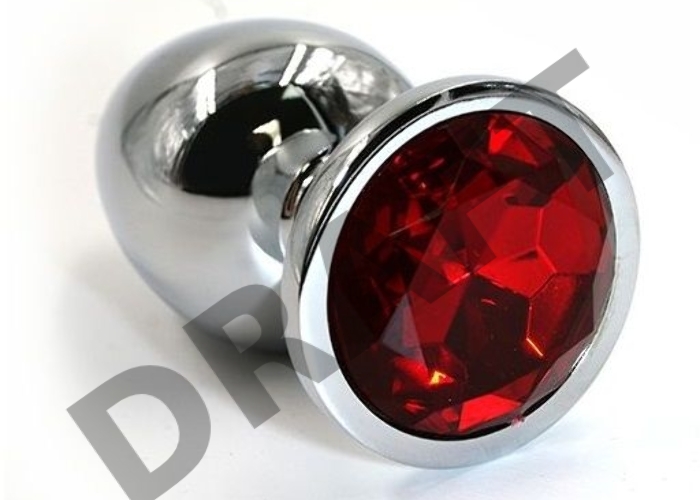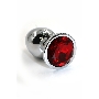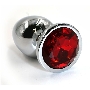 Серебристая алюминиевая анальная пробка с красным кристаллом - 6 см.
