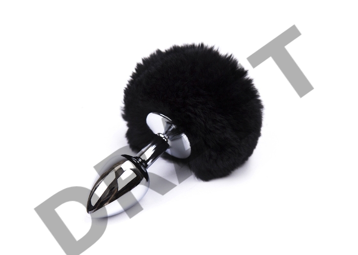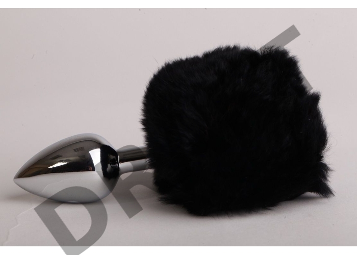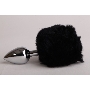 Серебристая анальная пробка c черным хвостом Задорный Кролик