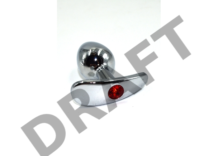 Серебристая анальная пробка для ношения из нержавеющей стали с красным кристаллом - 8 см.