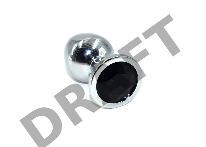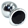 Серебристая анальная пробка из нержавеющей стали с черным кристаллом - 8,5 см.