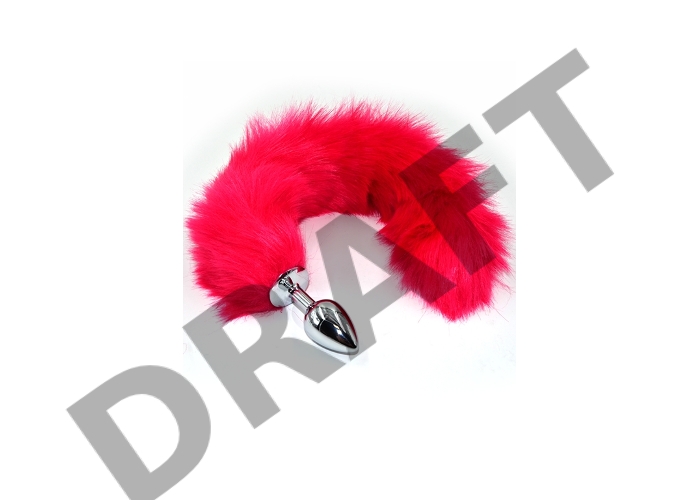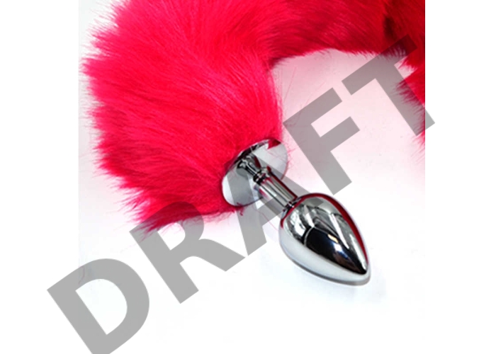 Серебристая анальная пробка из нержавеющей стали с розовым гибким хвостом