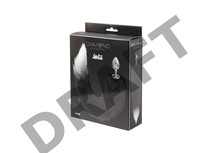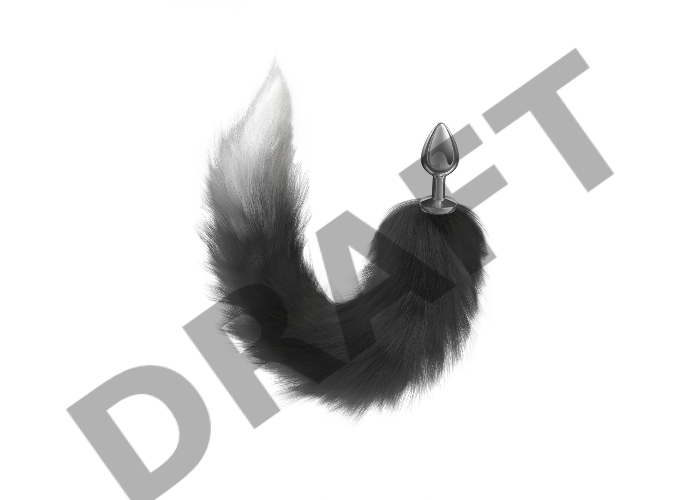 Серебристая анальная пробка с черным хвостом Galaxy