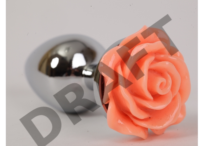 Серебристая анальная пробка с оранжевой розой - 9 см.