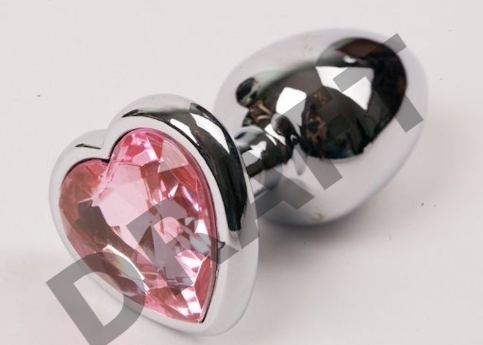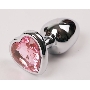 Серебристая анальная пробка с розовым стразиком-сердечком - 9 см.