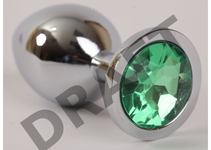 Серебристая анальная пробка с зеленым стразом - 9,5 см.
