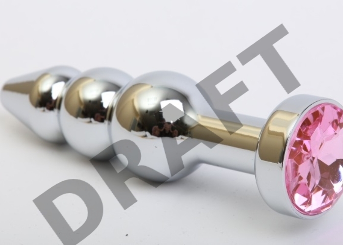 Серебристая анальная ёлочка с розовым кристаллом - 11,2 см.
