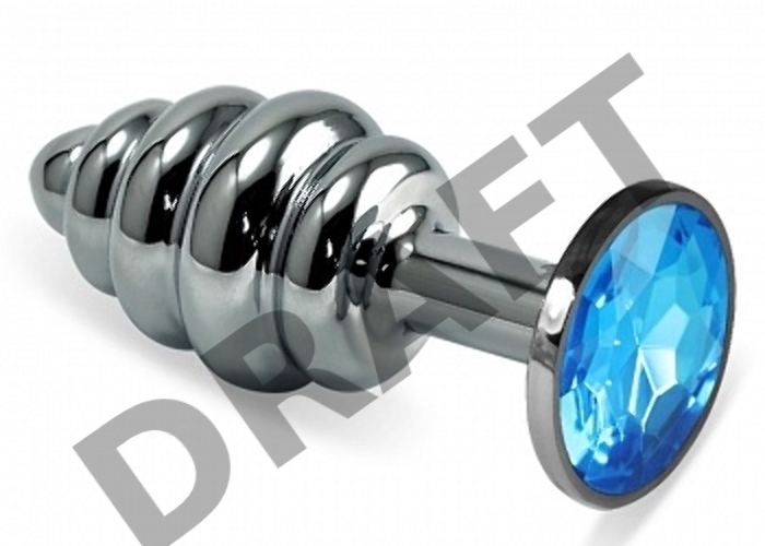 Серебристая фигурная анальная пробка с голубым кристаллом - 9 см.