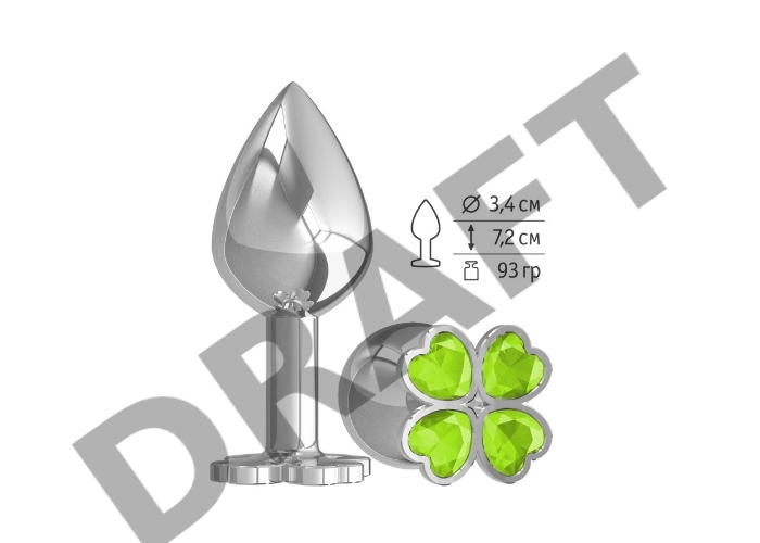Средняя анальная втулка Silver Клевер с салатовым кристаллом