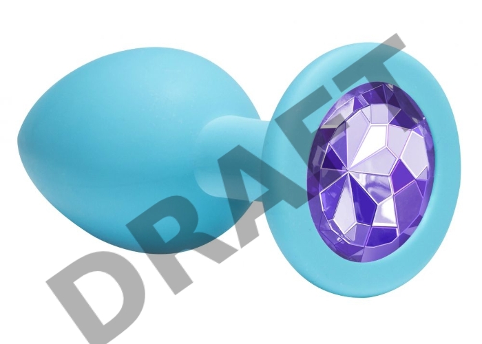 Средняя голубая анальная пробка Emotions Cutie Medium с фиолетовым кристаллом - 8,5 см.