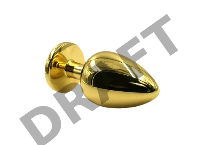 Золотистая алюминиевая анальная пробка с светло-розовым кристаллом - 6 см.