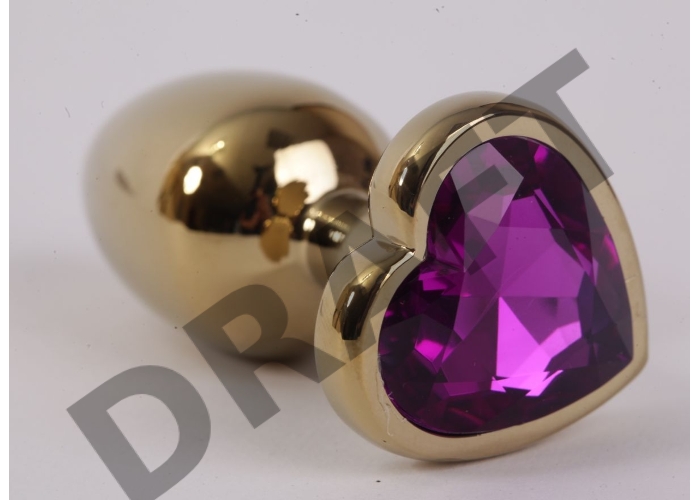 Золотистая анальная пробка с фиолетовым стразиком-сердечком - 8 см.