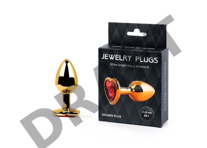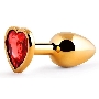 Золотистая анальная пробка с красным стразом-сердечком - 7 см.