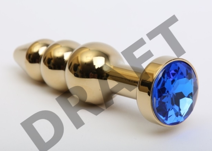Золотистая анальная ёлочка с синим кристаллом - 11,2 см.