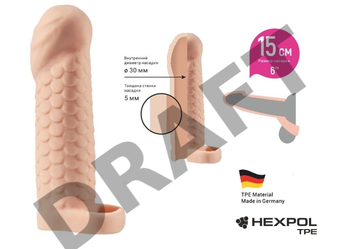 Телесная рельефная насадка-удлинитель KLEON с подхватом - 15 см.