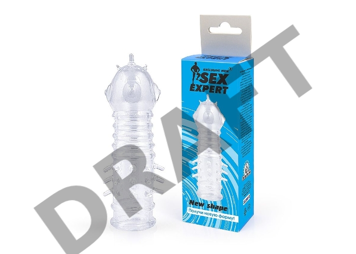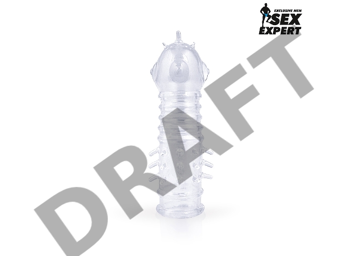 Закрытая прозрачная насадка на пенис с выпуклостями и шипиками - 13,5 см.