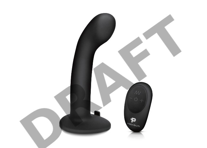 Черный вибрострапон с загнутой головкой Pegasus с пультом ДУ - 15 см.