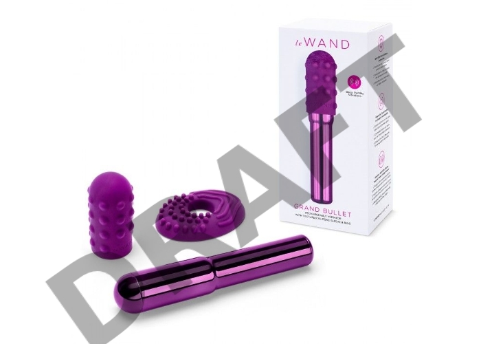 Фиолетовый жезловый вибратор Le Wand Grand Bullet с двумя нежными насадками