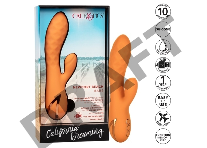 Оранжевый вибромассажер-кролик Newport Beach Babe с пульсирующим воздействием - 21,5 см.