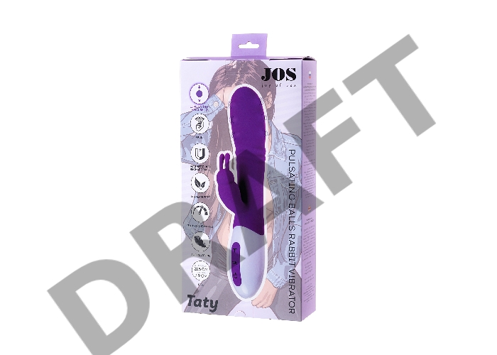 Вибратор c клиторальным стимулятором JOS TATY с пульсирующими шариками, силикон, фиолетовый, 21,5 см