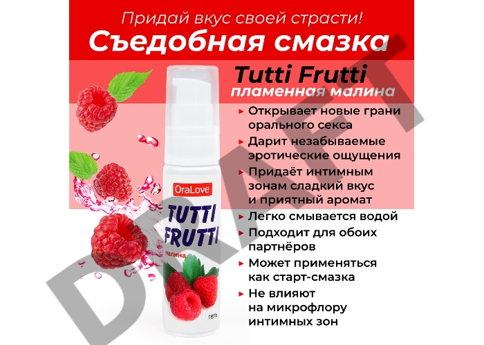 Съедобная гель-смазка TUTTI-FRUTTI для орального секса со вкусом малины 30г