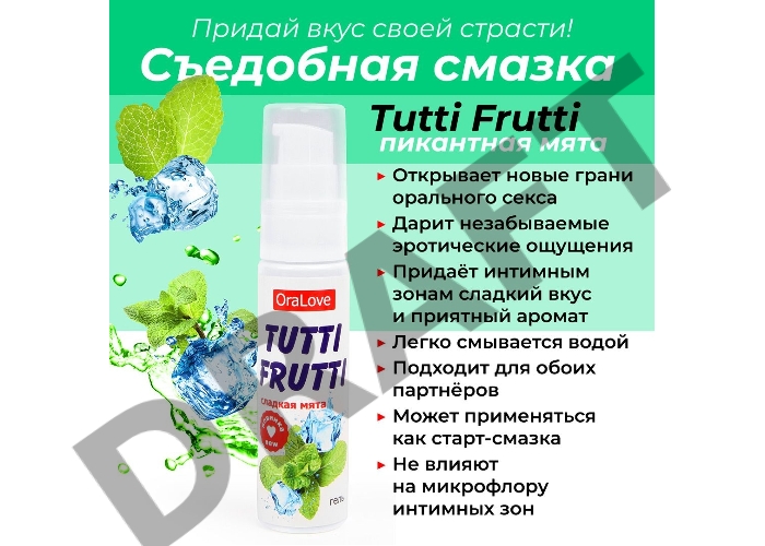 Съедобная гель-смазка TUTTI-FRUTTI для орального секса со вкусом сладкой мяты 30г