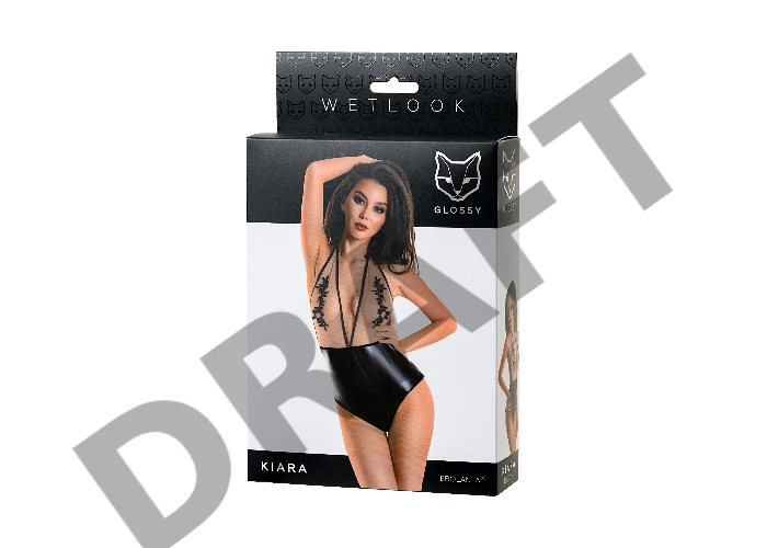 Боди Glossy Kiara из материала Wetlook, черное, M