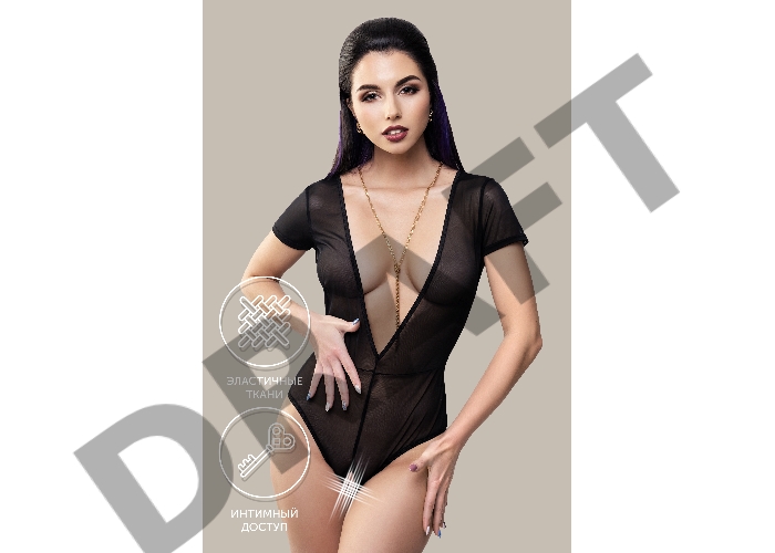 Эротическое боди Waname Abandon с короткими рукавами черное (46-48)