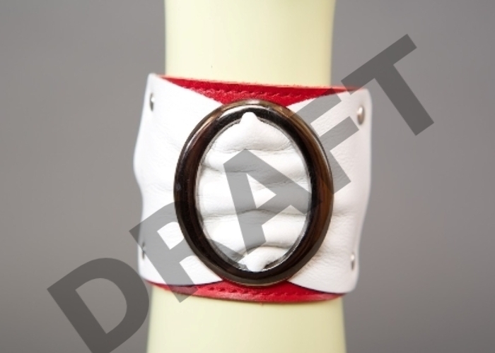 Браслет красно-белый с овальной пряжкой ширина 6 см.