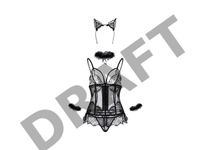 Комплект Candy Girl Kati (корсет, трусики, чокер, ободок-ушки, наручники), черный, OS