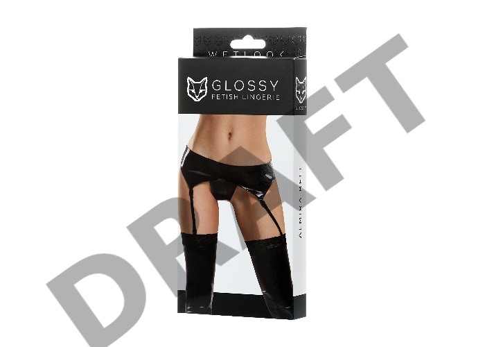 Комплект Glossy из материала Wetlook (пояс с пажами для чулок и трусики), черный, M